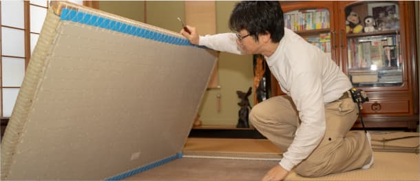 ご自宅に、当社スタッフがお伺いいたします。お見積もりはもちろん、気になるお部屋の畳の診断も無料で行います。